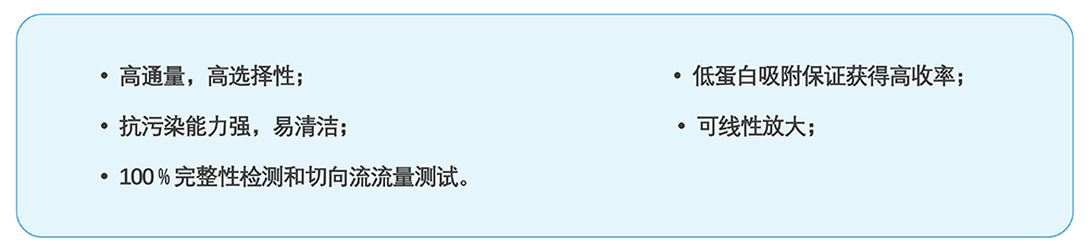 碧水源超濾膜包通過濾膜多層堆疊方式設計,濾膜采用PES材質,具有低特異性蛋白吸附、回收率高、通量高、化學兼容性好等優點。膜包安裝到夾具上,料液被泵入進液口,沿膜表面平行流動,被膜截留的物質通過回流口流出,透過膜的流體被收集到透過液流道內,流出透過液口。