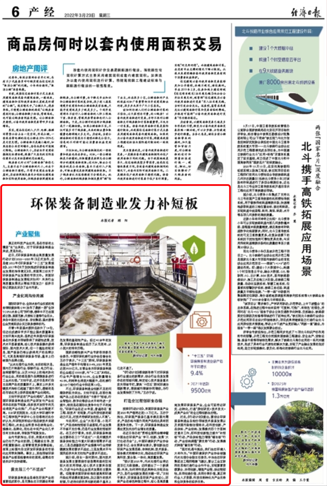 導讀:3月23日,經濟日報發表了文章《環保裝備制造業發力補短板》,對工信部、科技部、生態環境部等三部門日前聯合印發的《環保裝備制造業高質量發展行動計劃(2022―2025年)》進行報道。